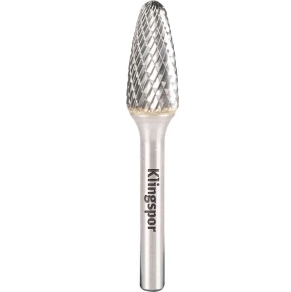 Der Hartmetallfräser HF 100 F von Klingspor ist in einer Standard-Verzahnung, einer für Aluminium und einer Kreuzverzahnung erhältlich. Die Universal- bzw. Standardverzahnung (Cut 2) bietet gute Finishing Eigenschaften und dient allgemeinen Anwendungen. Die Aluminiumverzahnung (Cut 3) ermöglicht einen hohen Abtrag und ein vermindertes Zusetzverhalten. Diese Verzahnung kommt bei weichen, langspanenden Werkstoffen zum Einsatz wie etwa Aluminium oder anderen NE-Metallen. Die Kreuzverzahnung (Cut 6) wiederum überzeugt mit einem verbesserten Handling und verhält sich vibrationsarm. Klingspor gibt für jede Variante des Hartmetallfräsers die zulässige und optimale Drehzahl im Katalog an. Für jede Kombination von Kopfdurchmesser und zu bearbeitendem Werkstoff besteht ein optimaler Bereich, in dem die Drehzahl gehalten werden sollte. Die maximal zulässige Drehzahl darf in keinem Fall überschritten werden. So ist sichergestellt, dass unter allen Bedingungen die besten Ergebnisse erzielt werden, der Frässtift sich nicht zu stark abnutzt und kein Sicherheitsrisiko besteht.